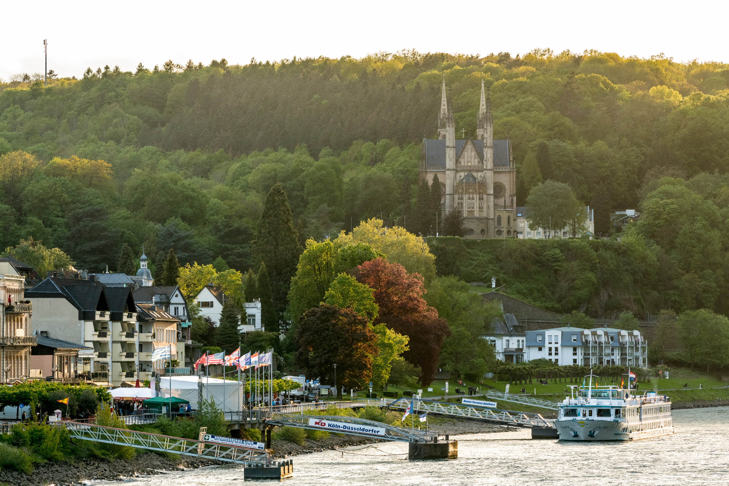 Am 1. Wochenende im Mai findet hier das große Rhein in Flammen-Abschlussfeuerwerk statt. Das ganze Wochenende gibt es ein Begleitprogramm.