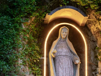 Ihr startet vom Wanderparkplatz gegenüber der „Erzquell-Brauerei“ mit einem Anstieg auf dem gelb markierten Zuweg. Auf einem am Sieghang verlaufenden Waldweg erreicht ihr am ehemaligen Rabenstollen eine erste Gelegenheit zur Rast mit erfrischendem Quellwasser aus den Tiefen des Giebelbergs. Der bequeme Forstweg schlängelt sich weiter durch hohen Laubwald und öffnet sich unter einer imposanten Felswand zu einer Art Gebetsraum im Grünen – der „Mariengrotte“. Nach mehreren Wegbiegungen erreicht ihr ein nach alter Tradition bewirtschaftetes Haubergsgebiet mit alten Hohlwegen. Anschließend geben einsame Pferdeweiden im Oehlsbachtal den Blick frei für malerische Aussichten. Zurück im Wald beeindrucken auf dem Bergrücken einzelne Baumriesen – noch heute markieren sie die Grenzen der ehemaligen Haubergsflächen. Ein Picknickplatz vor dem Erzquell-Stollen (seit 1885 wird aus dem Quellwasser des Stollens Bier gebraut) lädt zur Rast ein. Durch den Verlust von Fichtenbeständen ist die Landschaft im Anschluss immer wieder geprägt von lichten Flächen der Walderneuerung. Infotafeln geben Auskünfte über Spuren der La-Tène-zeitlichen Eisengewinnung. Oberhalb des Schindebachs sind Relikte des mittelalterlichen Bergbaus zu erkennen – am Wegesrand lassen sich trichterförmige „Pingen“ erkunden. Diese aneinandergereihten Vertiefungen im Gelände sind Zeugnisse ehemaliger Gruben des Erzabbaus. Durchs Schindebachtal führt die Tour dann wieder bergab zurück zum Ausgangspunkt.