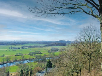 Die moderate Tour startet mitten in Hennef: Nach einer kurzen Passage durchs beschauliche Kleinstadtzentrum erreicht ihr den langgezogenen Bogen des Siegdamms, der entlang alter Linden durch eine friedliche Auenlandschaft führt. Zwischen Weingartsgasse und Seligenthal sind an der Sieg die Relikte der „Grube Ziethen“ zu sehen, in der man einst nach Bleierz grub. Bergauf führt euch ein Feldweg mit Landschaftspanorama oberhalb der verwilderten ehemaligen Weinbergterrassen zu einem höher gelegenen Rastplatz. Dort genießt ihr eine fantastische Aussicht und erhaltet interessante Informationen zur Siedlungsgeschichte zwischen Rhein und Sieg. Weiter führt ein Serpentinenpfad steil bergab in ein kleines bewaldetes Bachtal. Weiter geht’s erst steil, dann gemäßigter auf der anderen Talseite bergauf, wo bald der Kirchturm des hübschen Dörfchens Happerschoß in Sichtweite gerät. Ein Feldweg führt auf dem Mühlenberg zwischen Äckern und Wiesen hindurch, auf der einsamen Höhe erhaltet ihr überraschende Einblicke in die historische Kulturlandschaft. Im Anschluss führt euch die Route erneut ein Stück hinab in ein Kerbtal. Auf teils steilen Pfaden geht es am Rande des Örtchens Allner vorbei an den mächtigen Mauern einer einstigen Wasserburg und den Überresten einer Getreide- und Ölmühle am Siegufer. Entlang der Sieg und durch die Auen gelangt ihr zurück zum Bahnhof Hennef.
