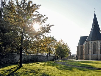 Zu Beginn führt euch die Tour in das liebliche Wiesental des Halberger Bachs, dort erreicht ihr das als Heilquelle bekannte „Marienbrünnchen“ mit Erzählstation (Audiotrack mit Handy abrufbar). An Wiesen, Weiden und einem Heiligenhäuschen vorbei gelangt ihr hinauf nach Bödingen, wo sich ein Besuch der reich ausgestatteten Wallfahrtskirche lohnt. Von hier aus geht es kurz bergab, dort befindet sich ein Kreuzweg mit sieben Stationen. Im Anschluss wandert ihr auf der Alten Dorfstraße durch das Örtchen Lauthausen mit seiner stattlichen Linde und der zierlichen Josephskapelle. Weiter geht’s auf einem malerischen Hangweg und schmalen Pfaden hoch zu den ehemaligen Weinlagen oberhalb der Sieg. Unterwegs laden Bänke zur Rast ein und belohnen euch mit tollen Ausblicken ins Tal. Von nun an führt zuerst ein Kiesweg, dann ein idyllischer Wiesenweg zwischen verwilderten Gärten am Hang entlang. Am Ortseingang zu Altenbödingen passiert ihr die Stelle, an der der Einsiedler Christian von Lauthausen einst ein Marienbildnis aufstellte. Im Anschluss führt euch die Tour in großem Bogen zurück zum Ausgangspunkt. Unterwegs durchquert ihr das verträumte Altenbödingen und erreicht über einen kleinen Abstecher den Segensaltar in Driesch, in dem Teile der ehemaligen Georgskapelle auf Burg Blankenberg verbaut wurden. Am Wegrand erfahrt ihr auf Infotafeln Wissenswertes über die Geschichte der Gegend.
