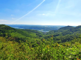 Nach deinem Start am Haltepunkt Rhöndorf bringt dich die Löwenburgstraße ins Siebengebirge. Nach einem kurzen Abschnit auf dem Rheinsteig erklimmst du die erste Höhe durch den Rhöndorfer Waldfriedhof. Im Anschluss führt dich ein Waldweg zur Bolvershahn-Hütte. Es folgt ein schön geschwungener Single-Trail, anschließend wanderst du auf einem Waldweg und der Drachenfelsstraße Richtung Gaststätte "Milchhäuschen". Nach einem halben Kilometer sorgt ein schmaler Pfad auf den Schallenberg für willkommene Abwechslung: Ein Schlenker führt dich zu einem Aussichtspavillon mit Schutzhütte. Von hier aus sind es nur noch ein paar Schritte zum höchsten Punkt deiner Tour: der 324 m hohe Geisberg mit Aussicht über das Rheintal auf das Hochplateau der Voreifel. Auf dem Weg zum nächsten Gipfel überquerst du auf der "Seufzerbrücke" den Mirbesbach und folgst einem komfortablen Weg durch ein Walderneuerungsgebiet. Das letzte Stück zur Bergspitze mit Burgruine (Rosenau) gehst du wieder auf einem schmaleren Pfad. An der Burgruine mit Mauerresten aus dem Mittelalter erwarten dich schöne Plätzchen – bestens geeignet für eine Rast mit Aussicht. Die nächsten 4 km gehst du beschwingt – es geht fast durchgehend bergab (200 Hm). Dein Weg führt dich dabei über die felsige Kuppe des Stenzelbergs. Durch jahrhundertelangen Latitabbau hat sich hier eine beeindruckende Felslandschaft mit mediterranem Flair entwickelt. Dein Nächstes Ziel – ein ehemaliges Zisterzienserkloster – erreichst du über den "Oberförster Ringkloffweg". Der Name ist auf jeden Fall Programm :-). Ein Blick auf die Klosterruine lohnt sich auf jeden Fall, auch die Sage vom Mönch von Heisterbach solltest du dir nicht entgehen lassen – die Handlung bietet eine spirituelle Perspektive auf die Wahrnehmung von Zeit und Raum. Den Abschluss für deine Tour bildet ein wunderschöner Pfad, Infofelsen am Wegrand vermitteln weitere Informationen zur Geschichte der Zisterzienser am Rhein. Über den Südhang der Dollendorfer Hardt erreichst du einen Weinberg mit Ausblick über das Rheintal – Infotafeln erzählen von der Geschichte des Weinbaus im Siebengebirge und den Zusammenhängen mit dem Kloster Heisterbach. Auf dem Weg zur Bahnhaltestelle bieten sich dir noch schöne Gelegenheiten zur weinseligen Einkehr.