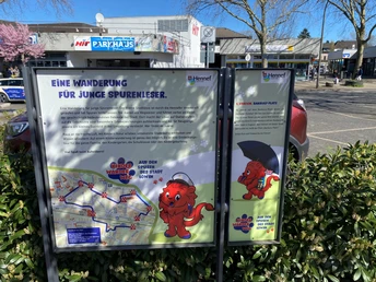 Auf 2,7 km startet der Weg am Bahnhof, führt hinter dem Rathaus an der Frankfurter Straße entlang, über die Königstraße zur Stadtbibliothek, entlang der Humperdinckstraße bis zum Place le Pecq.