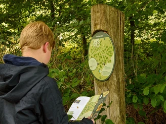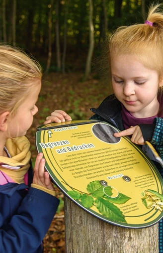 KLAPP DICH SCHLAU! An den „Klapp dich schlau“-Stationen des Waldlehrpfads ist dein Spürsinn gefragt: